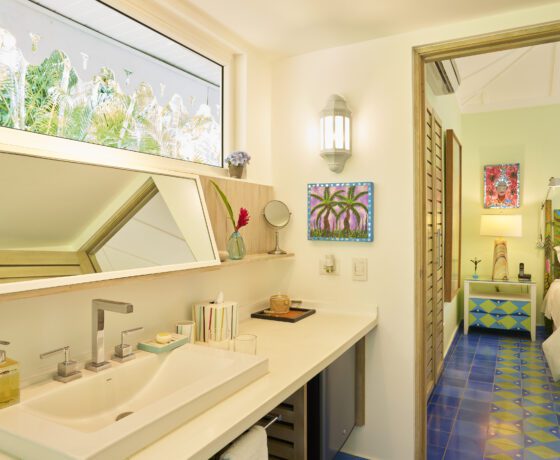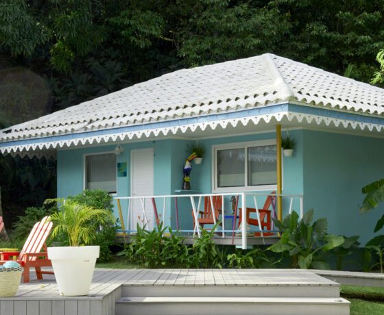 A one-bedroom villa tucked between a soothing waterfall and the rainforest, with its views of the surrounding Portobelo Bay, this 65m2 house displays examples of the work of local artists, together with molas (decorative fabrics painted by Guna Indians) and a collection of Turkish headpieces.