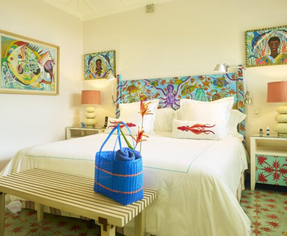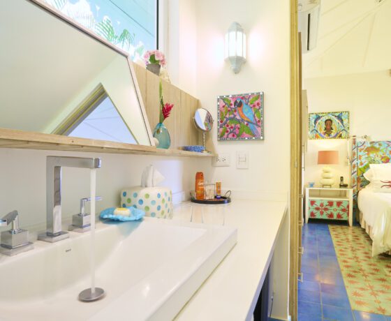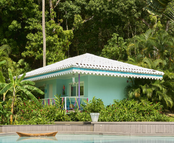 Thanks to its unique position; the stimulating nature together with the views over the rainforest and the sea bay from the terraces; Its 65 m2 contains a colorful collection of Congo headpieces.
